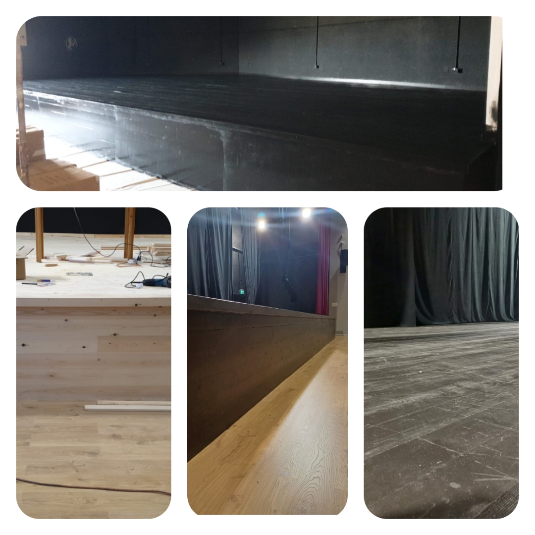 סינטק מתמחה בשיפוץ במות עץ ישנות כולל תיקון פגמים מהותיים שיוף הצבע הישן התזת חומר מעכב בעירה מאושר על ידי מכון התקנים לפי תקן 755 עד לקבלת במה מושלמת ומתאימה לשימוש מקצועי . אנשי המקצוע בחברתנו מתמחים בביצוע הנדרש לשיפוץ במות ישנות לרבות מילוי חורים וסדקים שנוצרים בעץ, וצביעה מחדש בצבע עליון שחור אטום ועמיד לשחיקה במידה ומתגלים פגמים מהותיים בלוחות העץ אנו מבצעים פירוק נקודתי והחלפת חלקים פגומים בבמה .