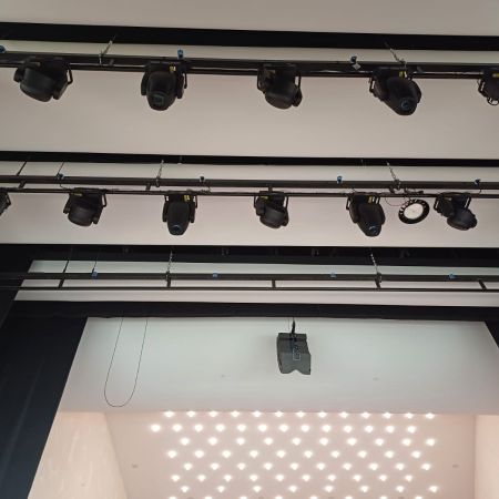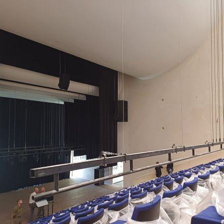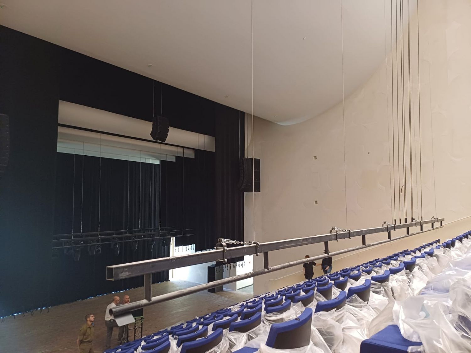 בנוסף לכך שילבנו בין מערכות הבמה 3 תקרות אקוסטיות כל אחת מותקנת על צוג חשמלי וכוללות