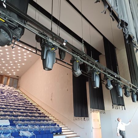 עם מערכות במה מכניות לתפאורה ותאורת מופעים , במהלך תכנון המערכת נדרשנו לתת מענה