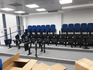 עבר שיפוץ מעמיק ובמסגרתו סיפקנו והרכבנו כיסאות מרופדים מפוארים ונוחים במיוחד , כמו כן בחלפנו ושיפצנו את מערכת הצוגים הידניים השיפוץ כלל החלפת חבלים וצינורות אלומיניום , וכן החלפנו את מסך הראשי